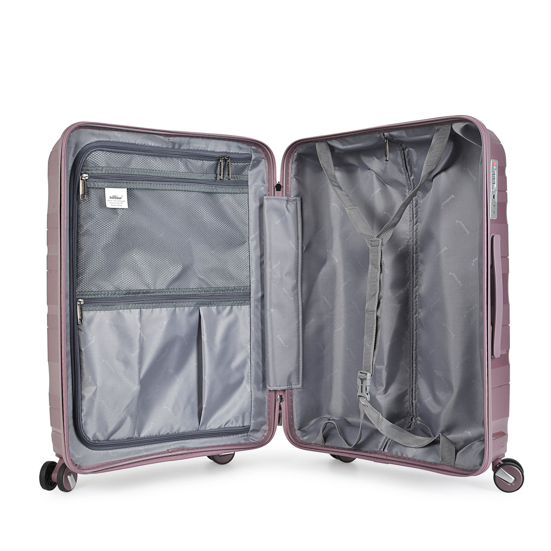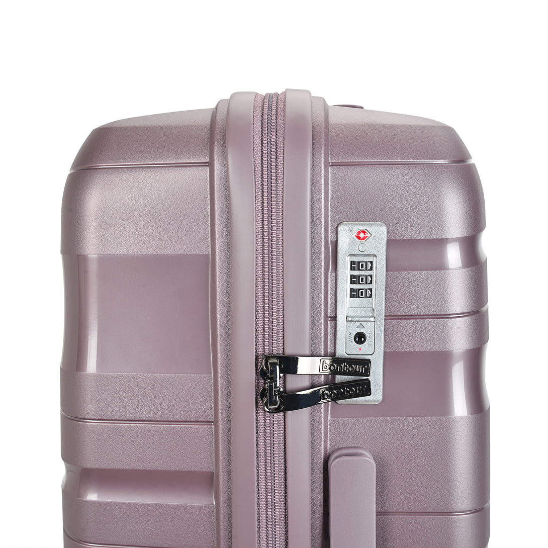 Setul de trolere Bontour „Flow”, echipat cu o închidere de înaltă securitate TSA, asigură prioritatea liniștii dvs., oferindu-vă confortul de a ști că obiectele dvs. sunt în siguranță chiar și în timpul celor mai riguroase controale de securitate. Călătoriți cu încredere și confort, știind că lucrurile importante sunt mereu protejate.