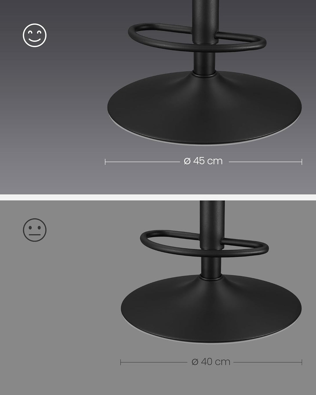 [Stabilitate și siguranță] Datorită cilindrului de înaltă calitate, cadrului din oțel cromat și bazei robuste (45 cm), fiecare scaun suportă până la 120 kg. Chiar și la rotirea scaunului 360°, scaunul oferă stabilitate și siguranță ridicate.